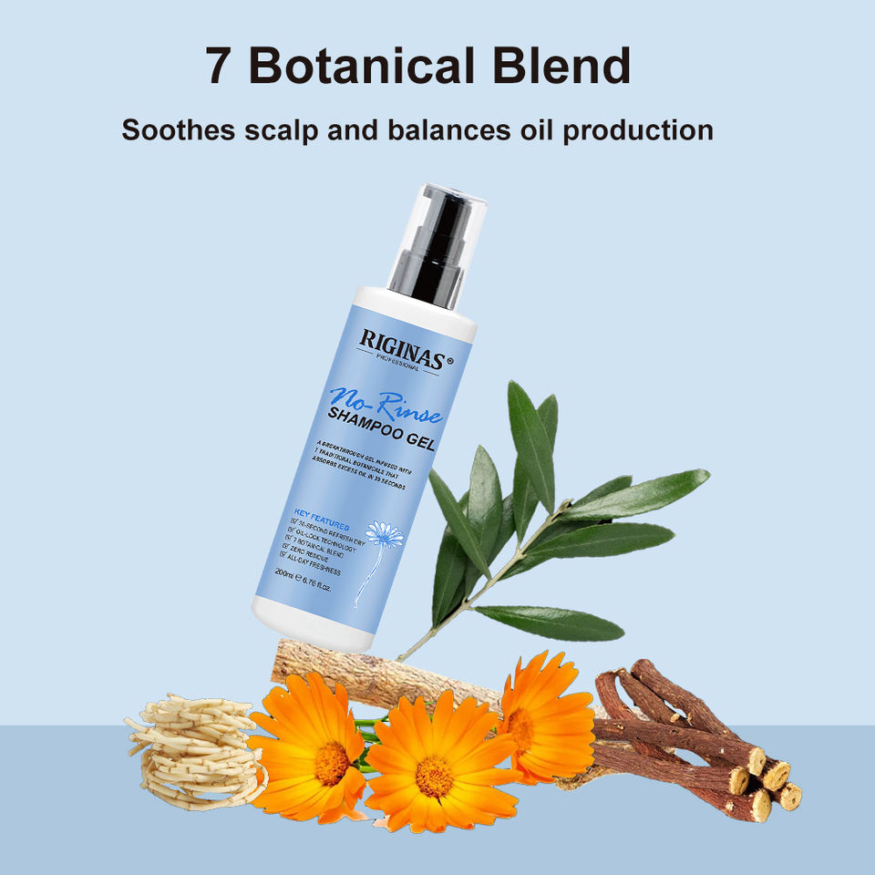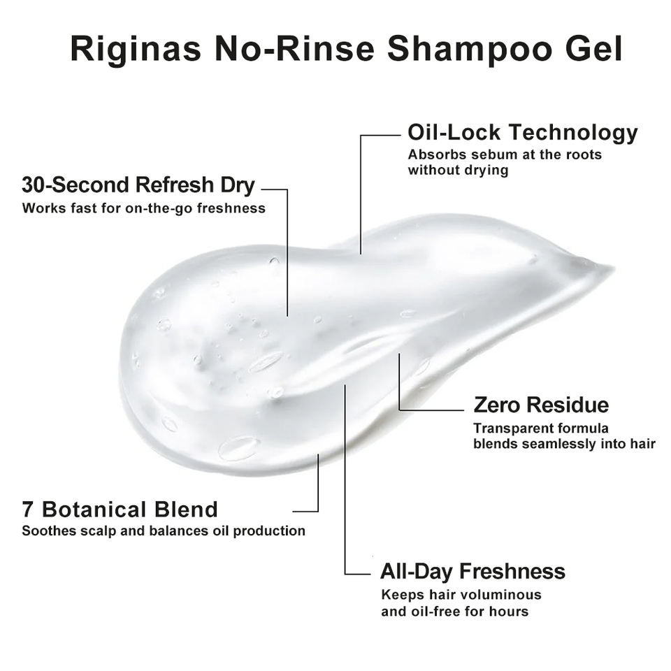 Gel Shampooing Sans Rinçage Volumisant et Contrôle du Sébum Riginas, Gel Sans Eau pour Usage Domestique, Marque Privée