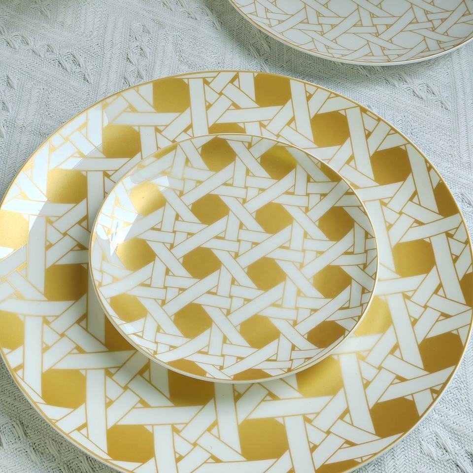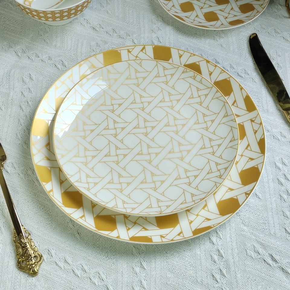 Service de table 5 pièces de luxe durable et élégant, série bleu et blanc, en céramique et porcelaine fine dorée, avec logo, pour usage professionnel