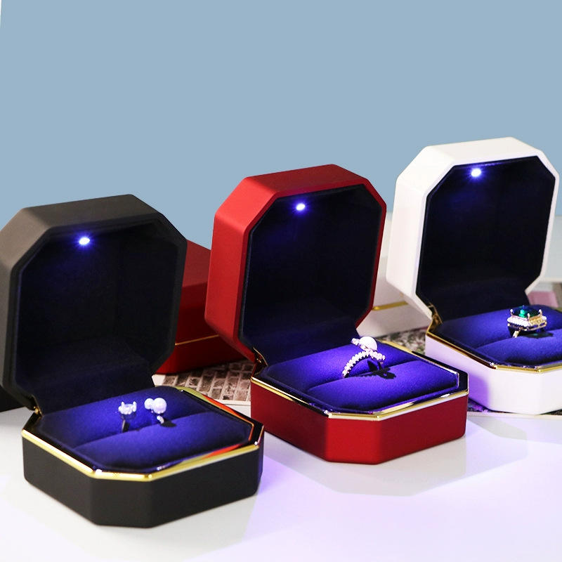 Boîte à bagues de mariage haut de gamme lumière LED proposition Bracelet collier pendentif stockage de bijoux