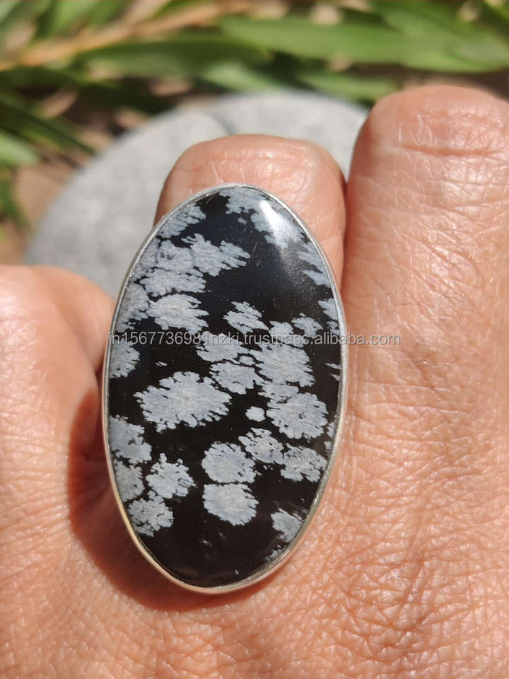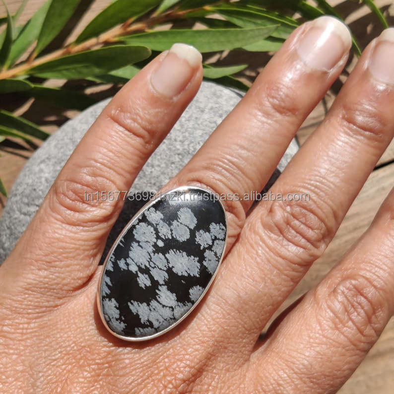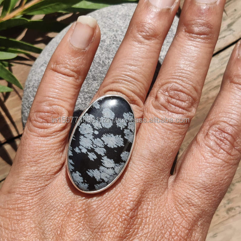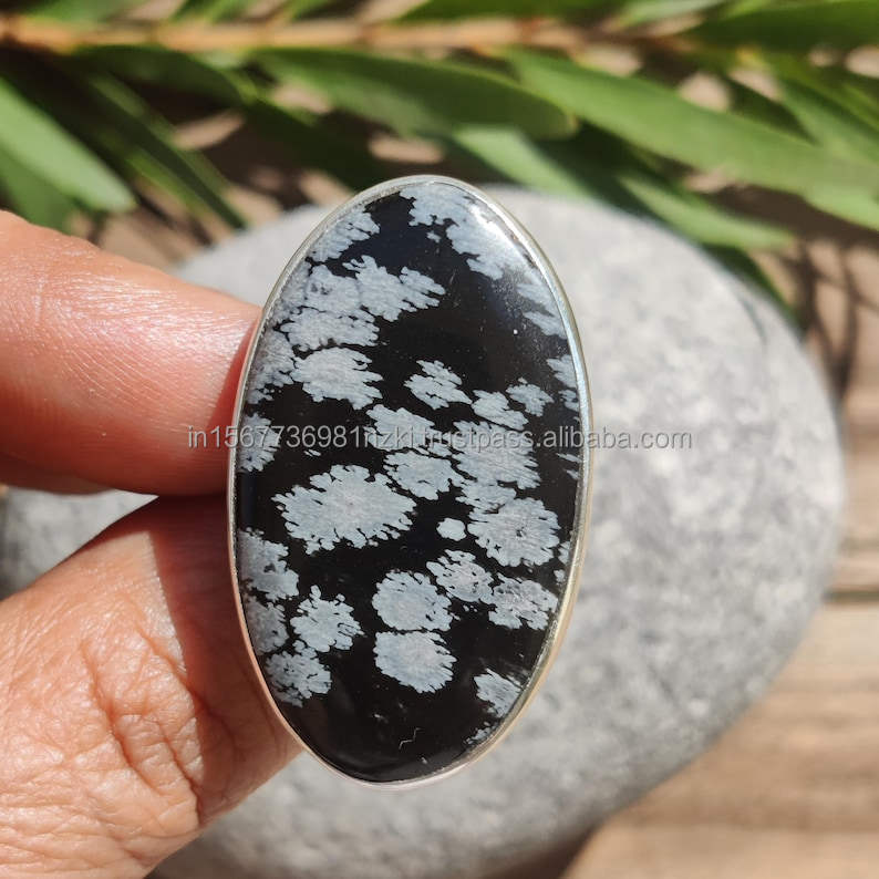Nom du produit:Bague en Argent Sterling 925 Flocon de Neige Obsidienne