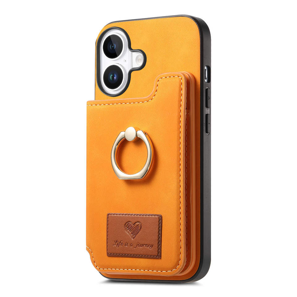 Étui de téléphone Ring Holer avec porte-cartes sécurisé, pochette pliable, support arrière, étui pour carte d'identité en PU, support magnétique tendance