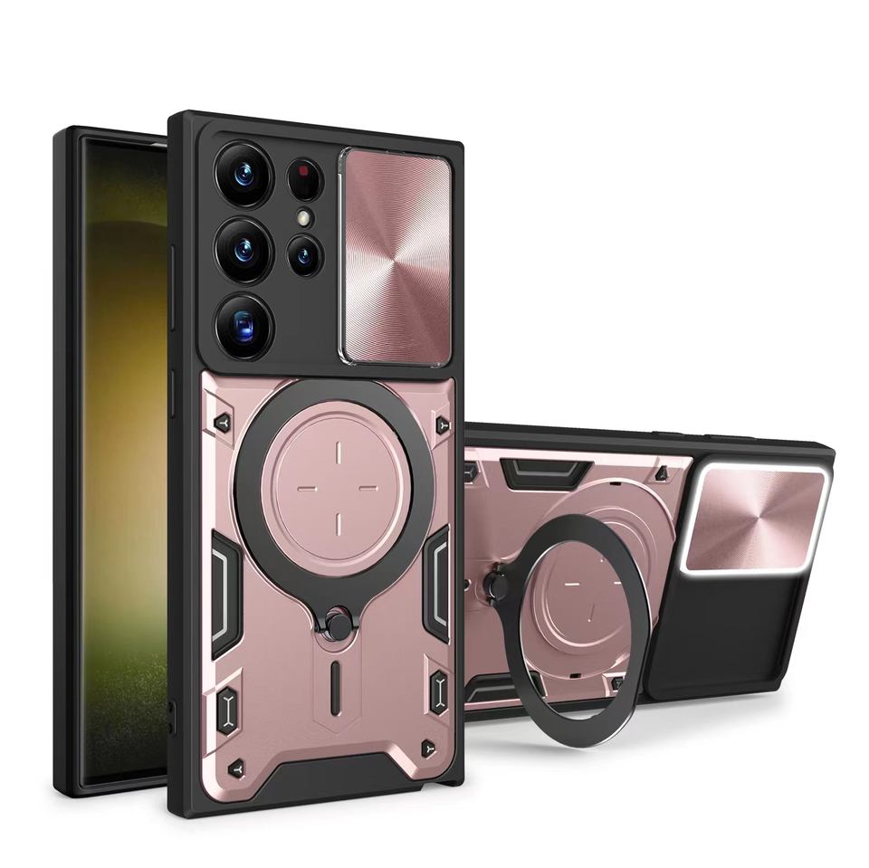 Étui de protection Ring Kickstand pour Samsung S23/S24 Ultra Slide Camera Lens Cover avec fonction magnétique arrière