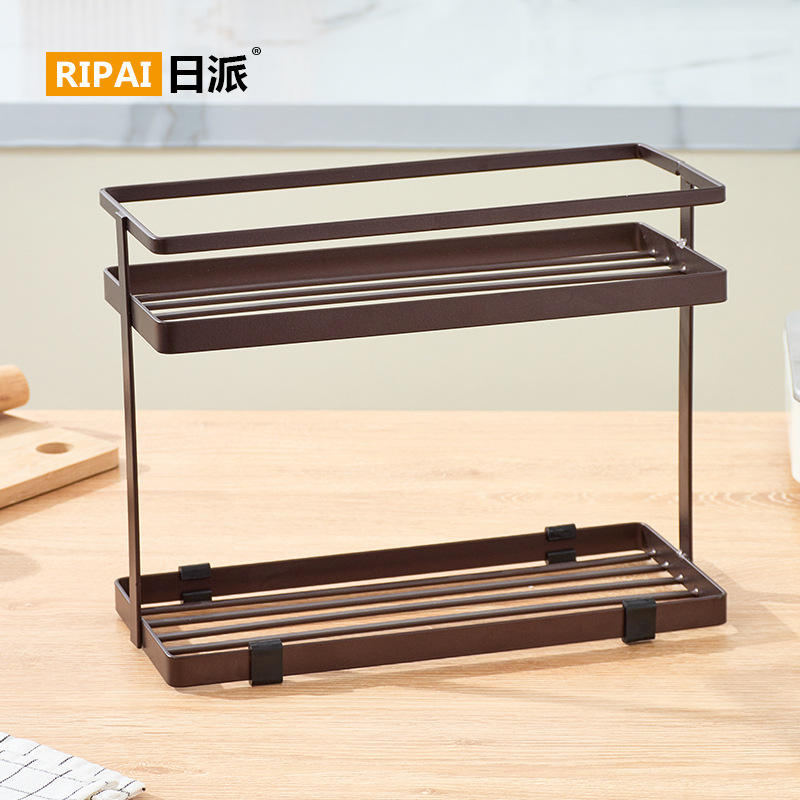 Étagère à épices Ripai à double couche avec couvercle en bois, organisateur de rangement empilable pour bocaux à assaisonnements
