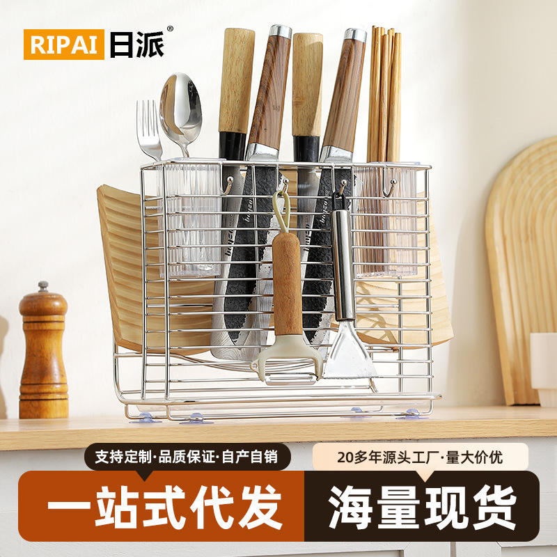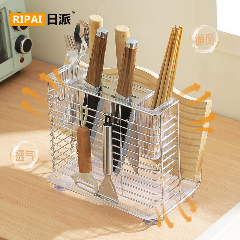 Support à couteaux Ripai en acier inoxydable avec 4 fentes, taille L, antidérapant, avec drain pour rangement de cuisine