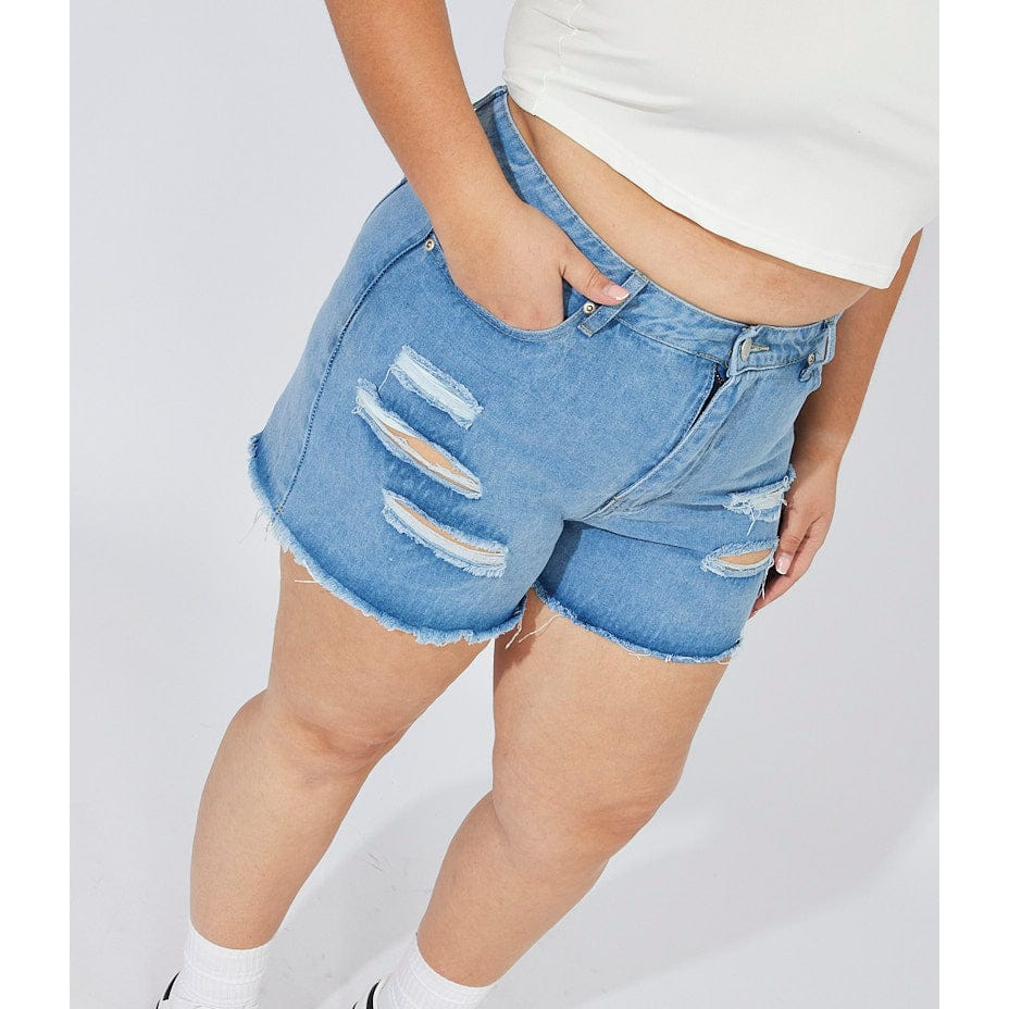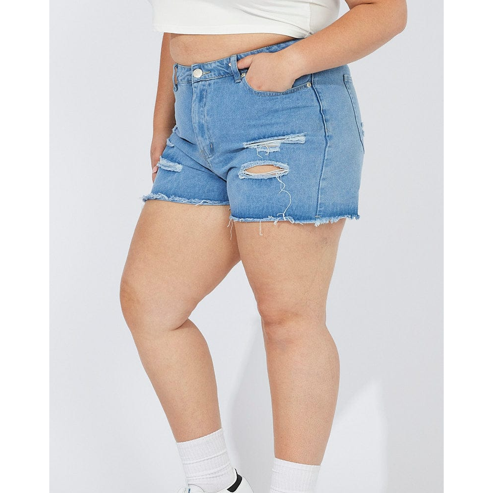 Taille haute femme Style respirant Denim Shorts grande taille femmes à la mode déchiré mi lavage jean