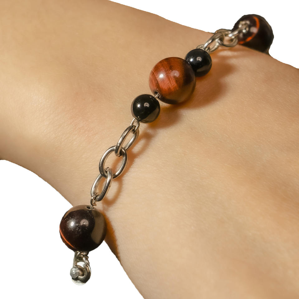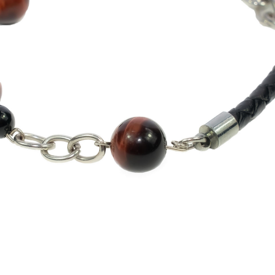 Oeil de tigre rouge, calcédoine noirePierre principale