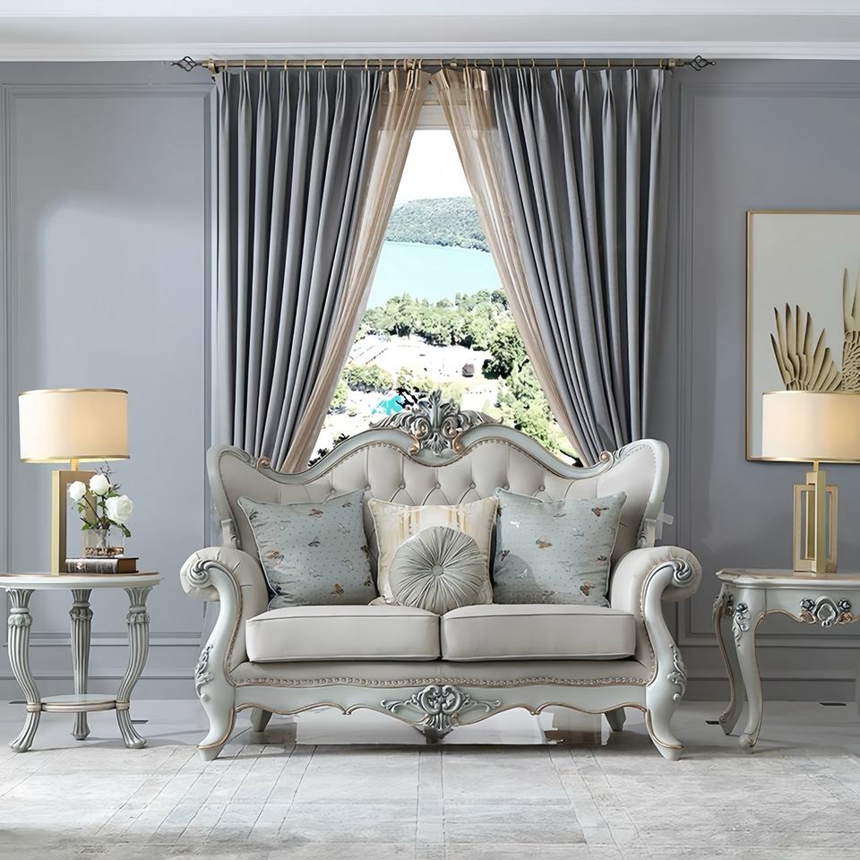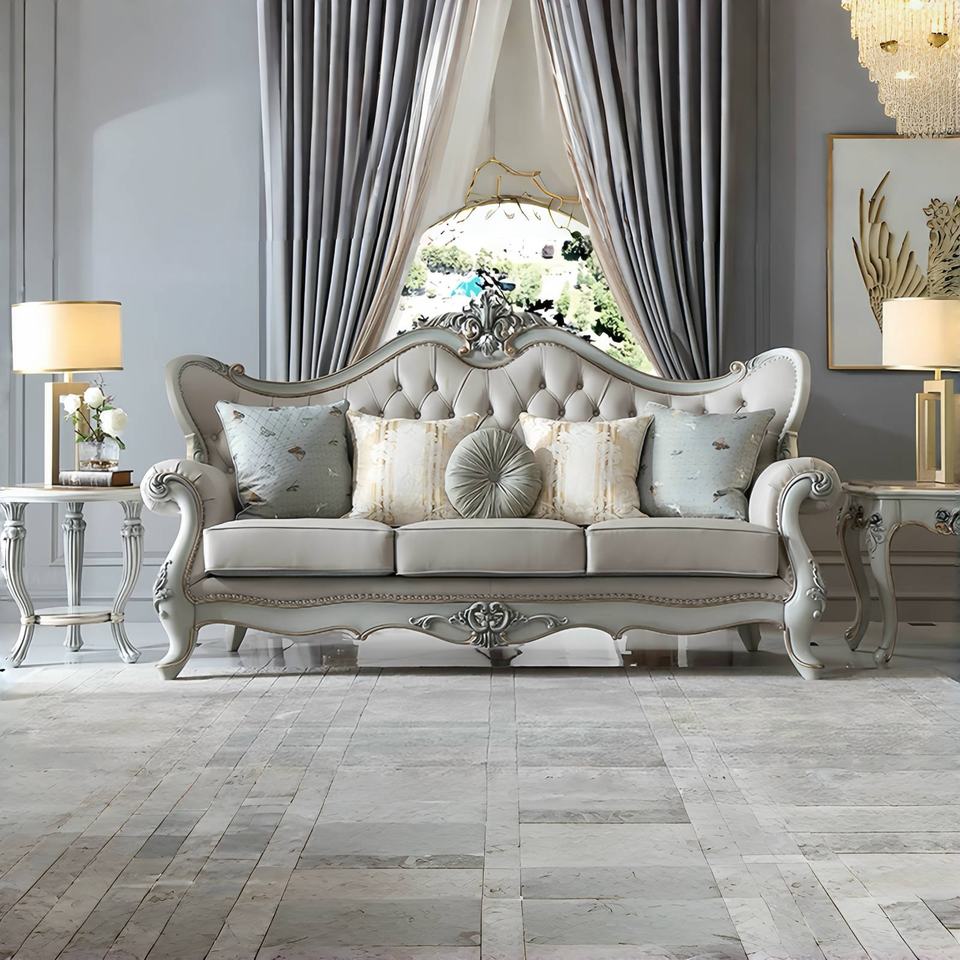 Canapé en cuir véritable en cuir de vachette haut de gamme de style français Rising Court, canapé européen classique et luxueux