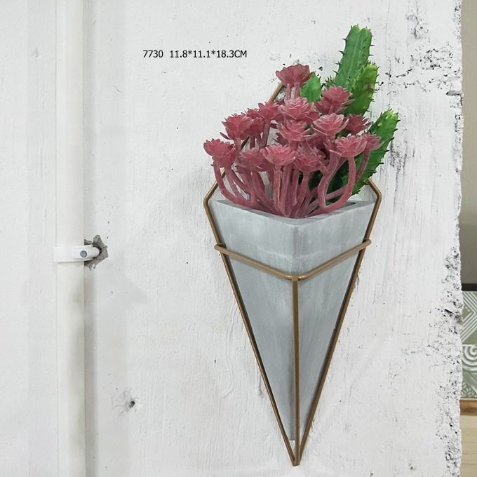 Rivet Suspendue D'intérieur Moderne Pyramide Support Mural Décor Planteur Pot De Fleur Vase Avec Support En Métal-7 Pouces Gris