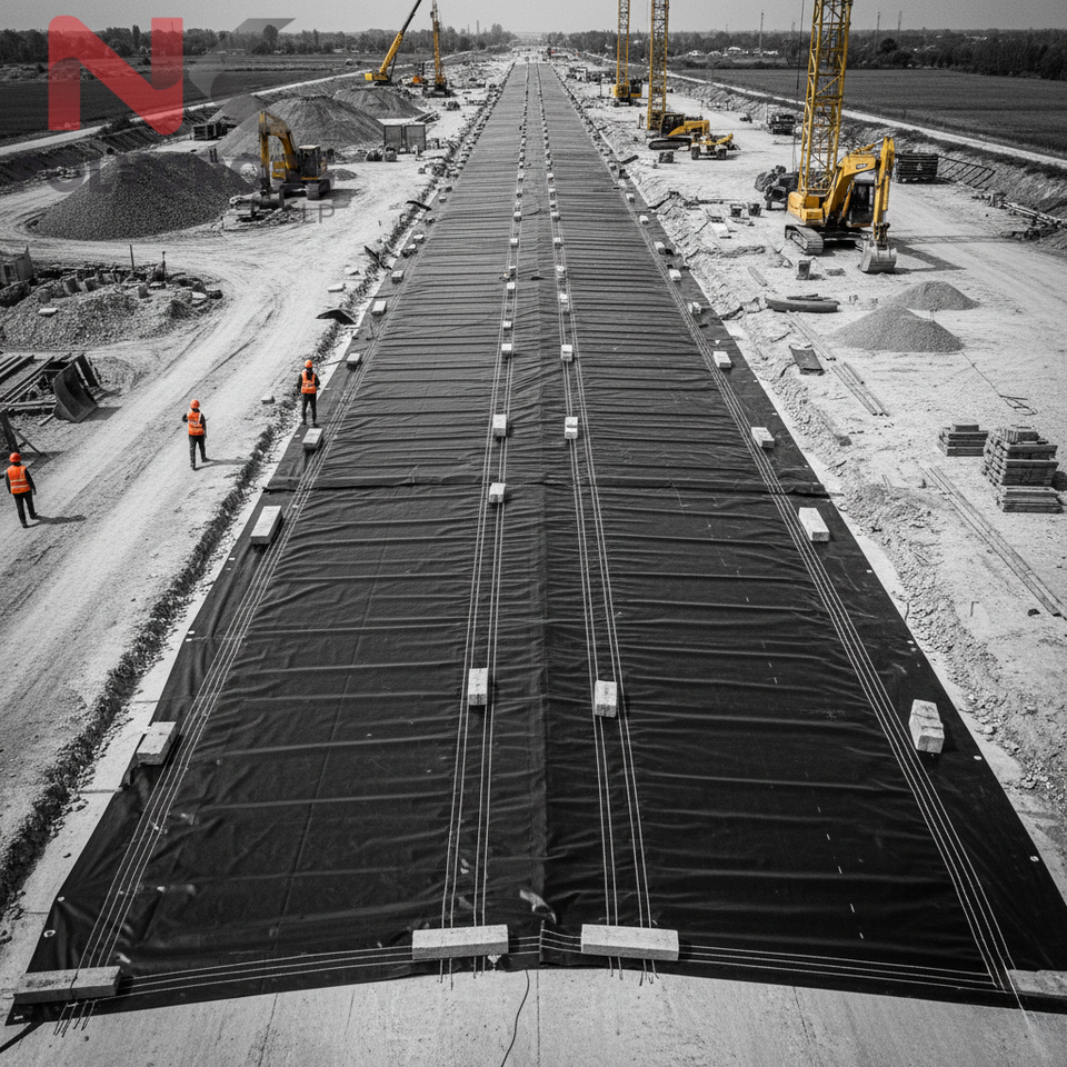 Bâche de protection imperméable robuste pour le durcissement de l'asphalte routier, idéale pour la construction de routes et la protection des surfaces