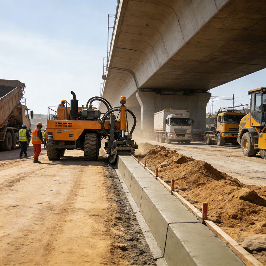 Machine de bordure routière pour la construction de bordures et de rebords en béton