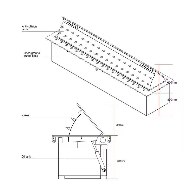 Dimension de bloqueur de route:(Largeur d'interception + 270mm)L x 1080mmW x 800mmH