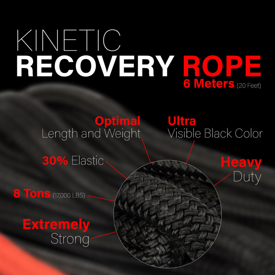 Corde de récupération cinétique Roadpower 14 tonnes, corde de remorquage tout-terrain robuste, corde extensible absorbant les chocs et maximisant l'énergie