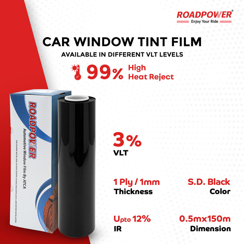 Film de fenêtre en PVC durable Roadpower Série SPT 50CM*150M Noir super foncé avec protection UV et fonctions de confidentialité pour voitures