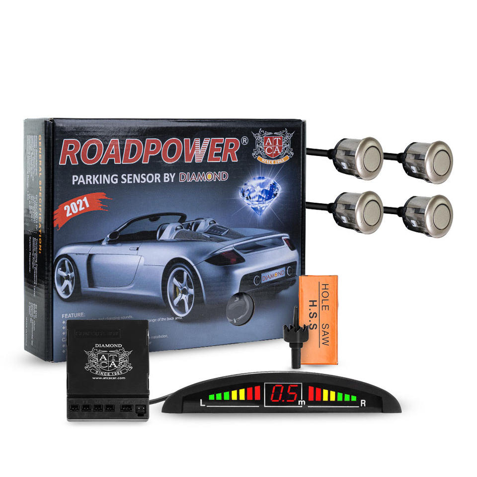Capteur de stationnement Roadpower Diamond 4 pièces avec affichage LED, portée de 0,3 à 1,5 m, DC 10 à 14,7 V, et alertes sonores Safe Assist