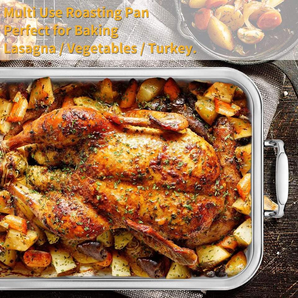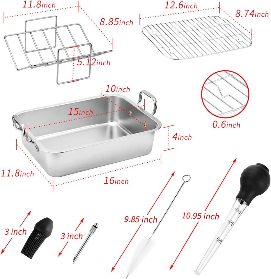 Rôtissoire avec grille de cuisson Rôtissoire à dinde en acier inoxydable de 15 pouces avec grille en forme de V et rôtissoire rectangulaire à dinde