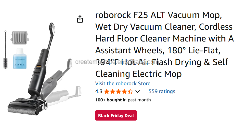 Aspirateur balai sans fil Roborock F25 BX, aspirateur et serpillière tout-en-un avec 20000Pa, 194 ° Sèche-linge à air chaud et auto-nettoyant
