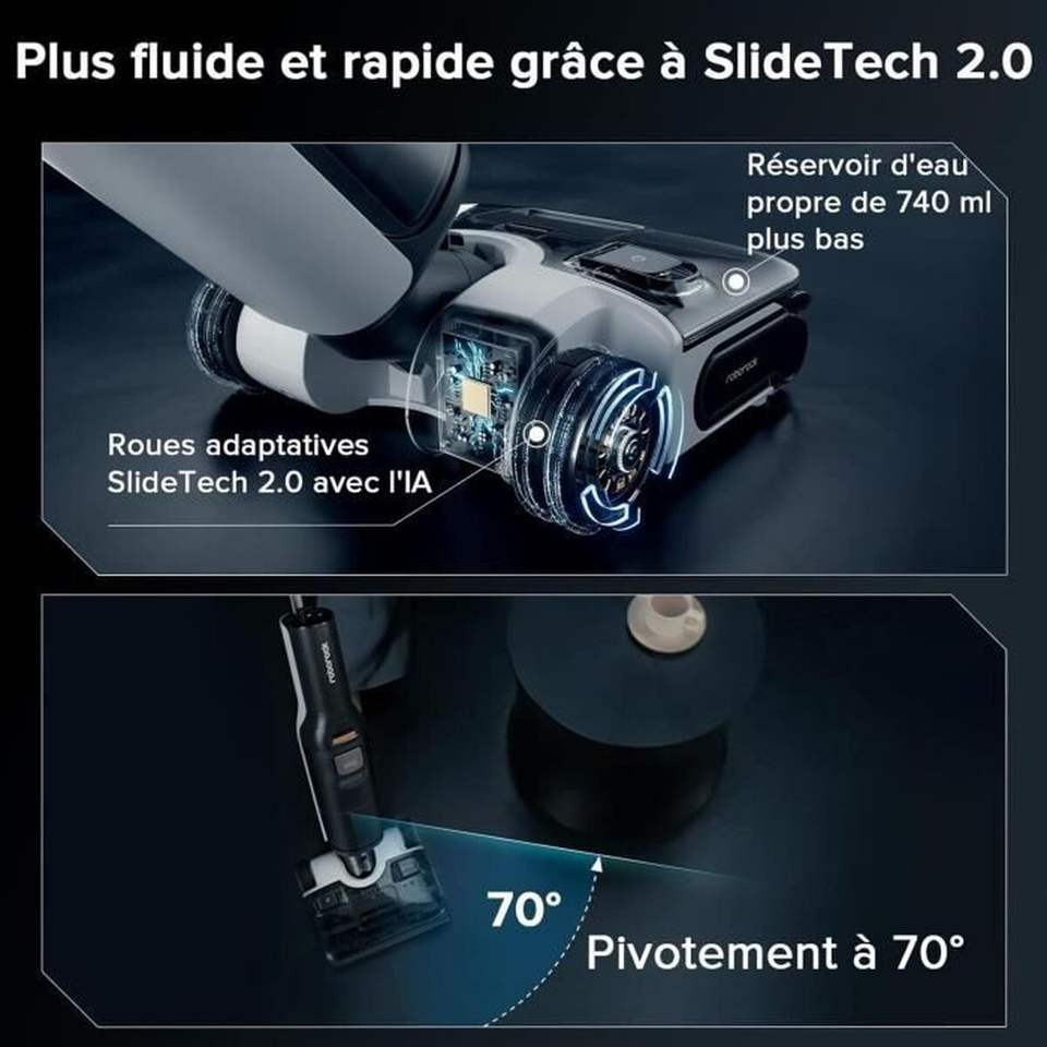 Aspirateur eau et poussière Roborock, moteur sans balais, aspiration 121-150 AW, autonomie 61-90 min, contrôlé par application, réservoir d'eau 750 ml - Blanc