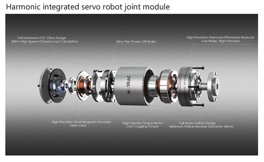 Module articulé robotique OD40mm ID4.6mm Couple 1Nm Vitesse 60 tr/min 19 bits Servo-intégré Harmonique Actionneur articulé robotique