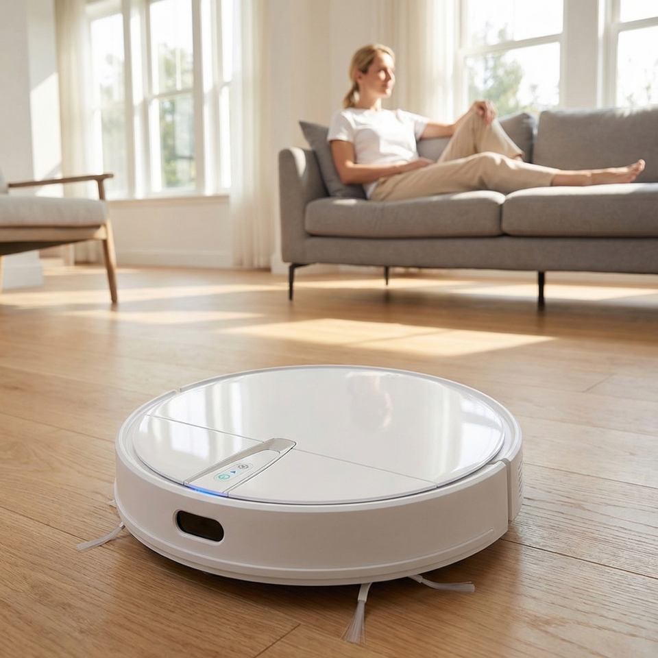 Robot aspirateur intelligent avec application connectée, retour automatique à la station de charge, fonctions de balayage et de lavage