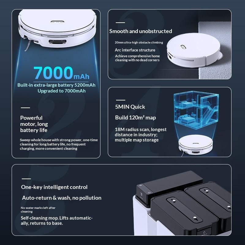 Caractéristique:Auto-recharge, Écologique, Nettoyage des bords, Nettoyage automatique, Navigation chambre par chambre, Programmation