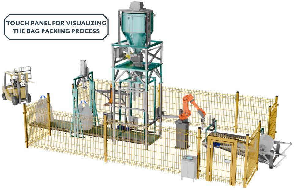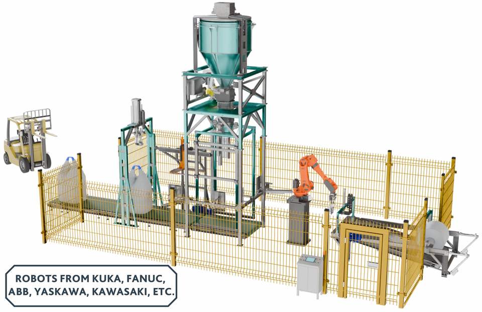 Lignes de palettisation rapides de big bags avec bras robotisés