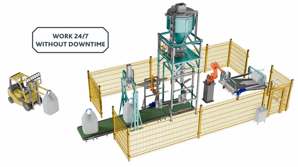 Solutions de palettisation robotisée pour charges lourdes et instables de GRVS (FIBC)