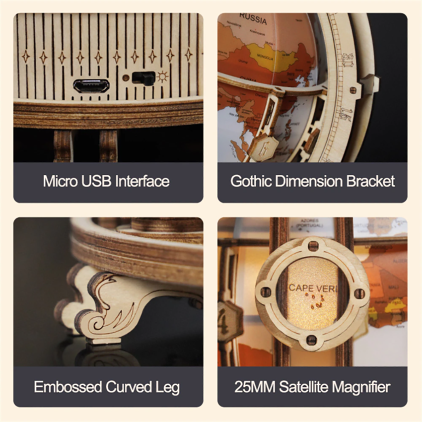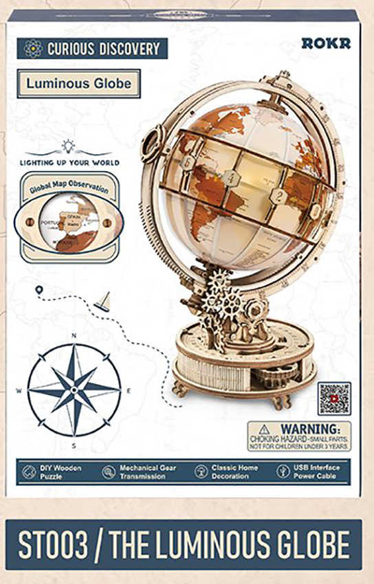 Robotime Rokr Jouets en gros Artisanat en bois ST003 Modèle de globe terrestre lumineux Puzzles en bois 3D