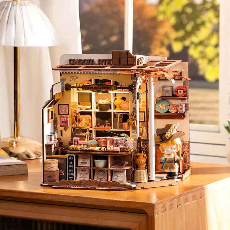 Robotime Rolife Jouets assemblés à la main DG174 Henry's Chocolate Puzzles en bois 3D DIY Kit de maison miniature