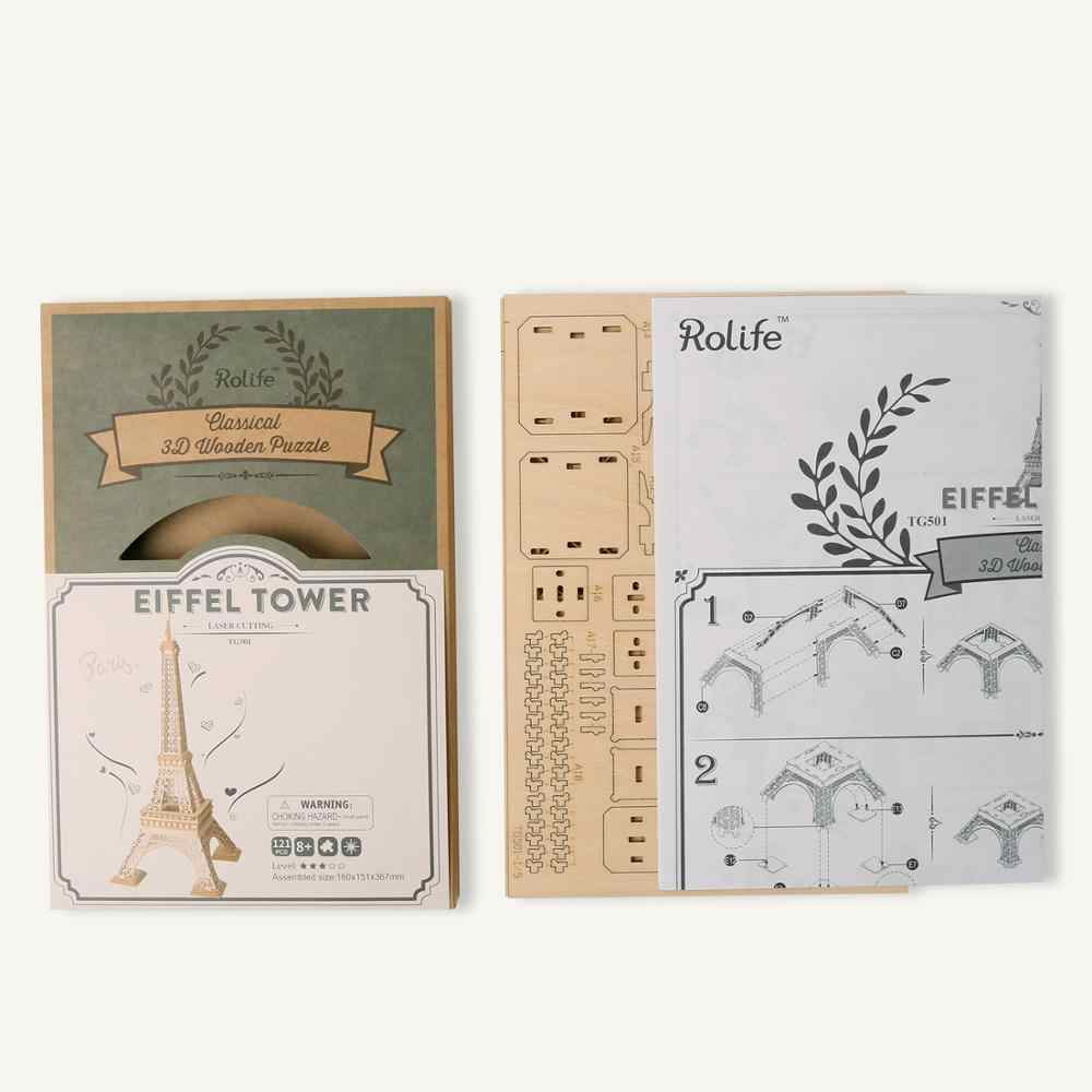 Robotime Rolife TG501 Tour Eiffel Modèle réduit de construction fait à la main Puzzles en bois 3D pour adultes