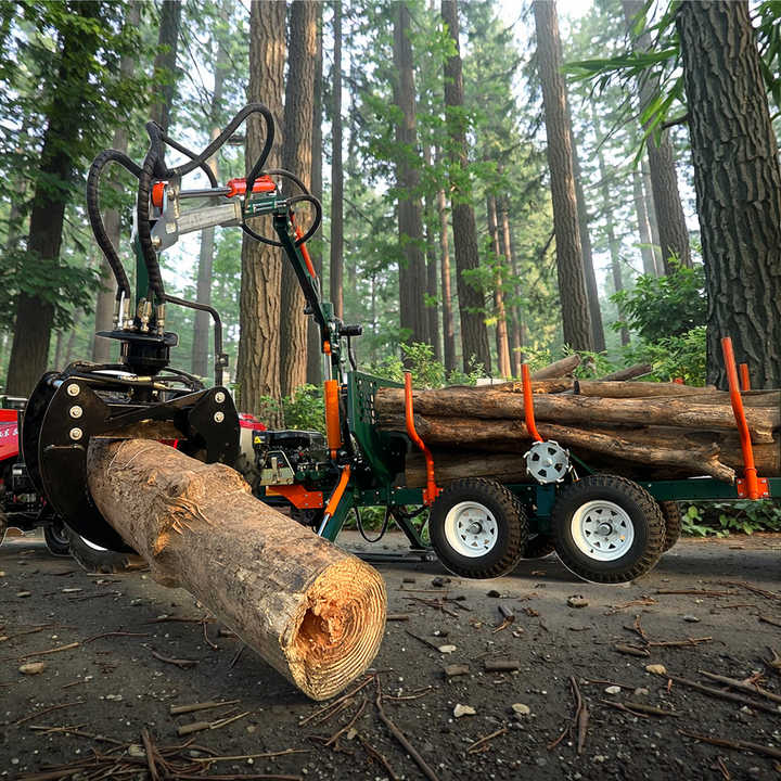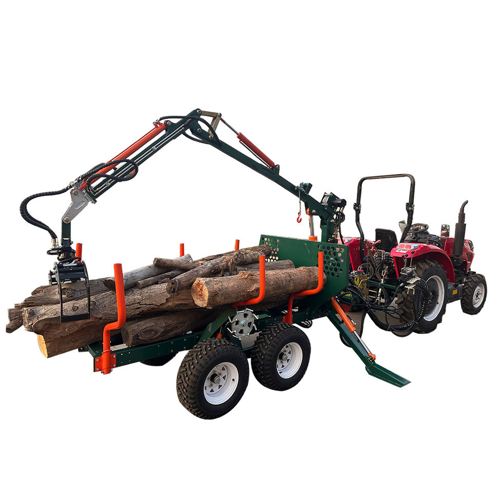 Remorque à grumes robuste avec treuil hydraulique à télécommande, transmission 4x4 et capacité de charge de 2 tonnes pour les opérations de chargement de grumes