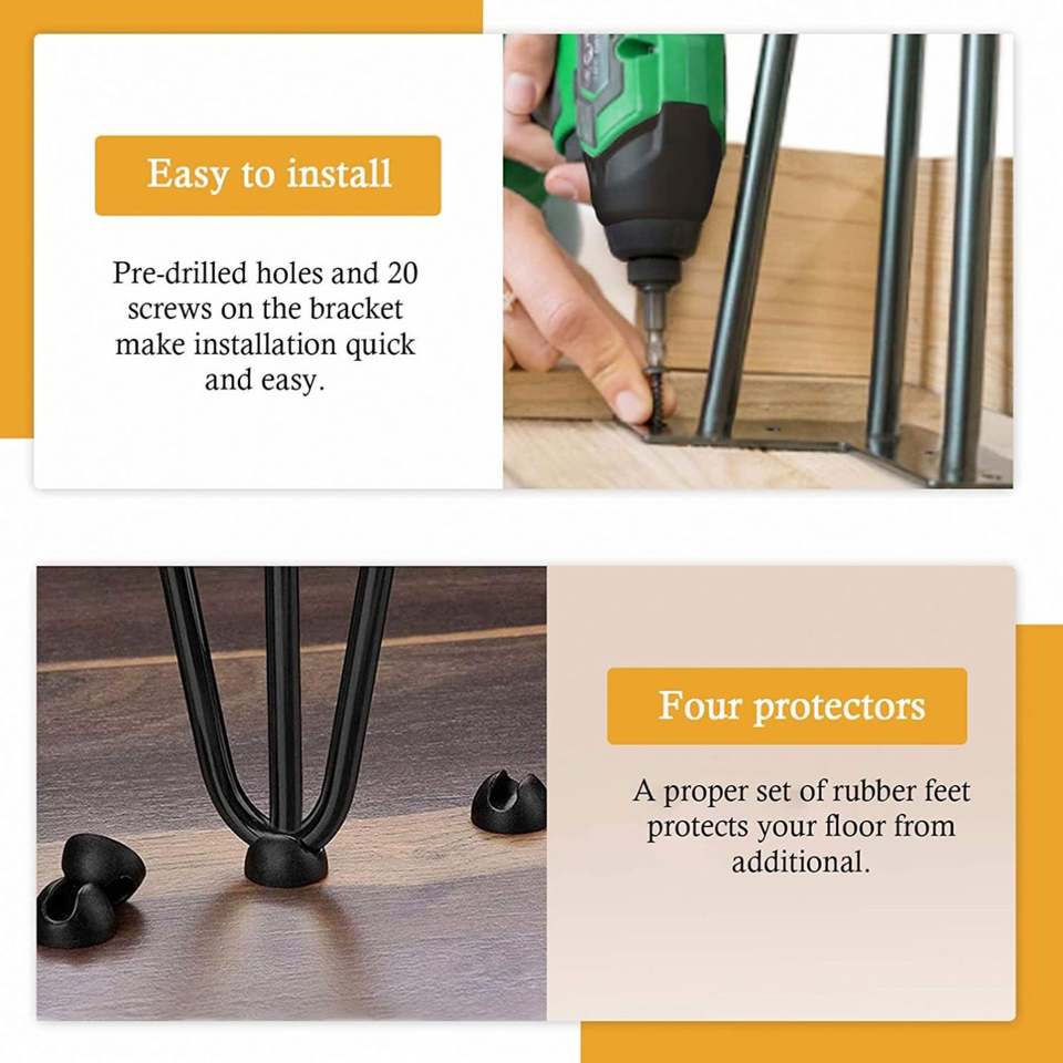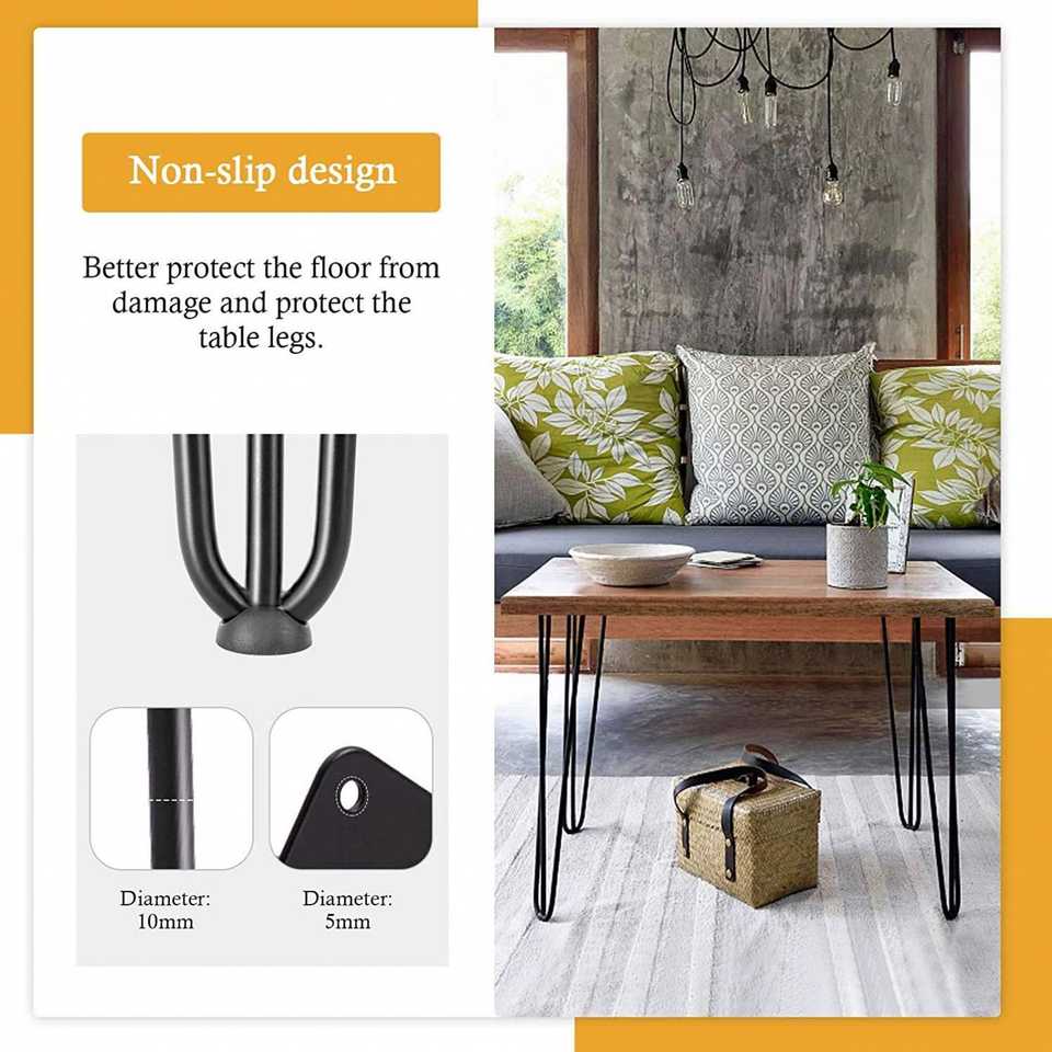Pieds en acier robustes pour mobilier d'extérieur, salon, atelier, avec bases de protection et vis pour Mesa De Acero Muebles