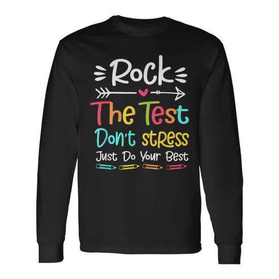 T-shirt à manches longues Rock The Test pour les enseignants, design motivant pour les examens