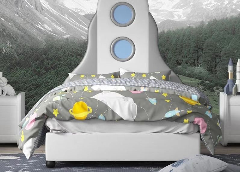 Rocket Ship Kids Daybed Stockage créatif moderne en bois pour garçons Conception de dessins animés pour jeunes avec thème d'aventure