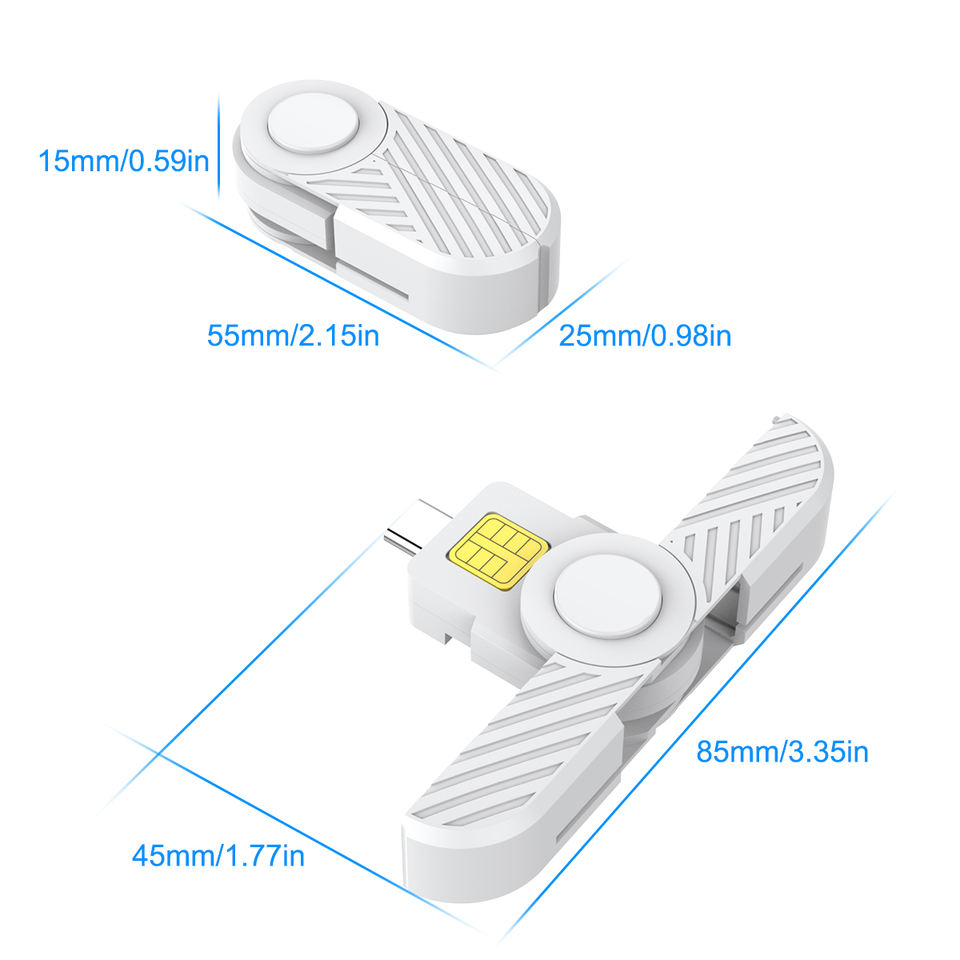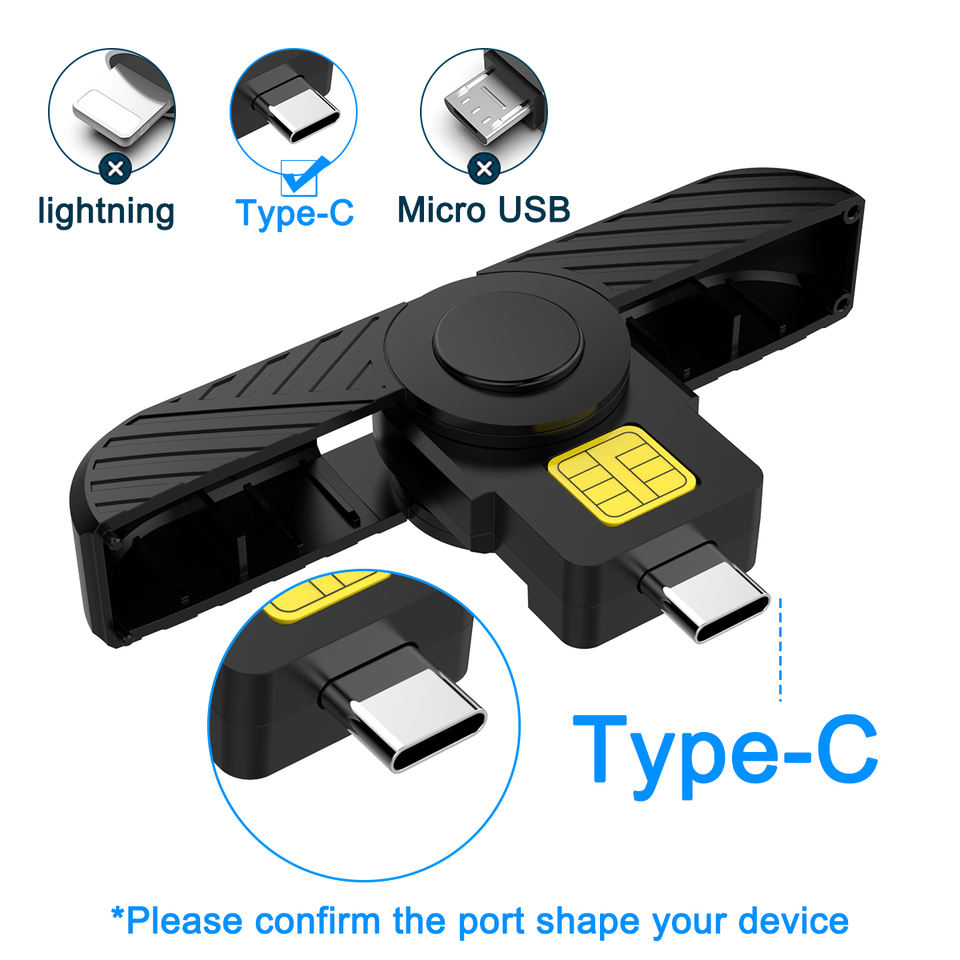 Rocketek ISO7816 Nouveau Lecteur de Cartes à Puce Pliable USB Type C CAC pour Mobile Android et Cartes Bancaires