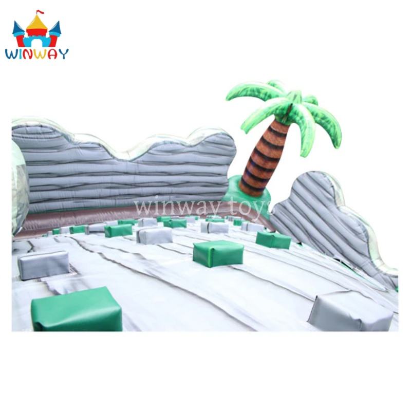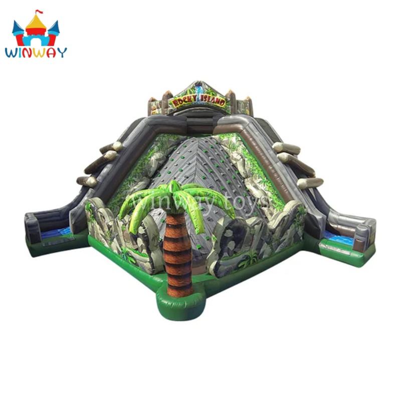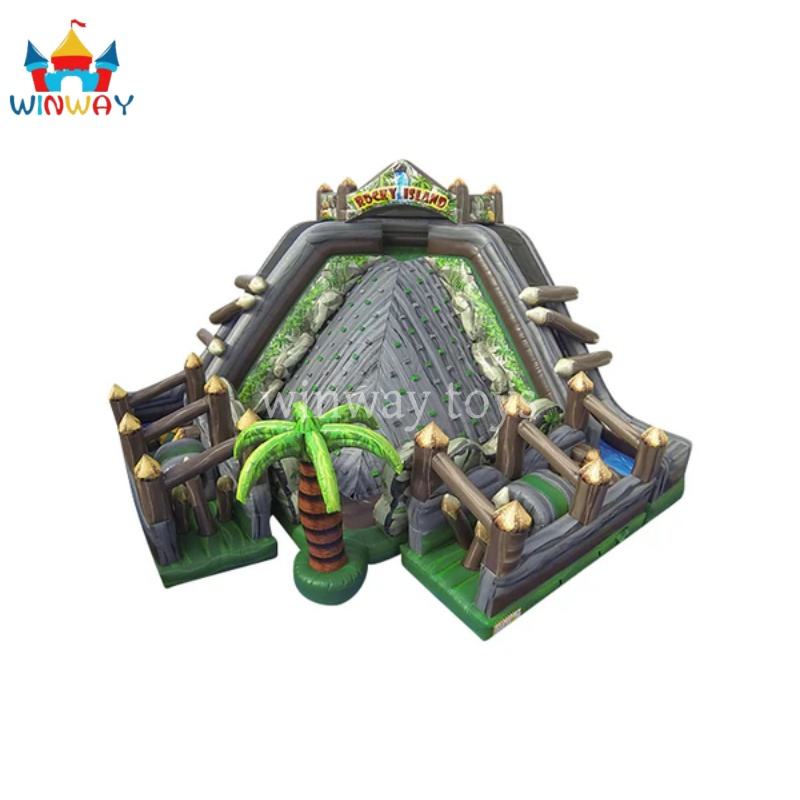 Parcours d'obstacles gonflable Rocky Island avec logo personnalisé imprimé sur matériau PVC 32x32x22 pieds, couleur personnalisée pour un jeu amusant et actif