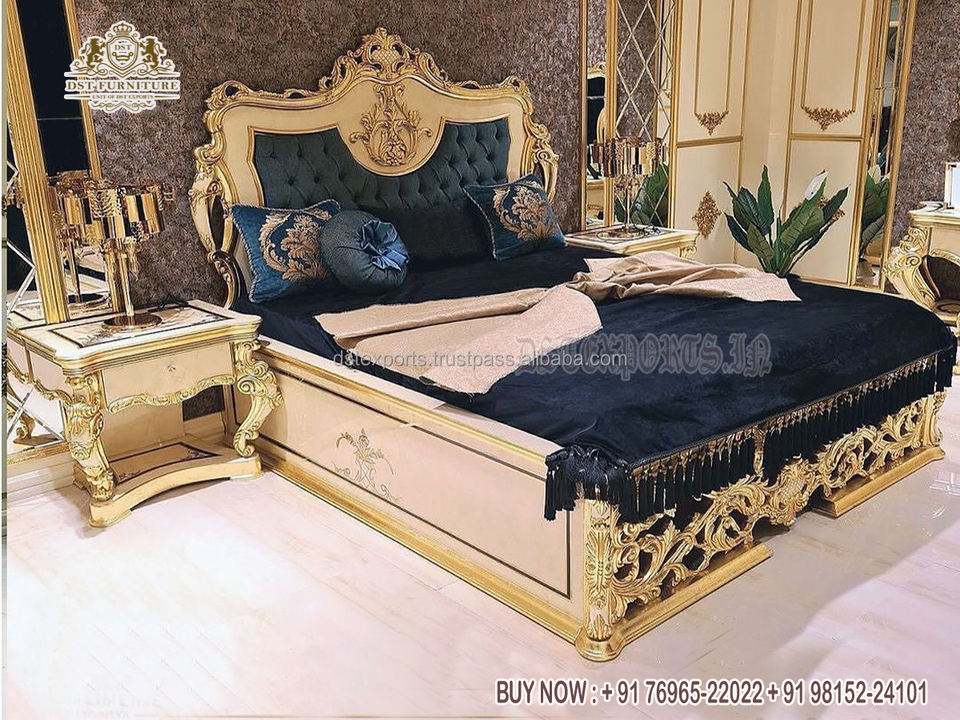 Meubles de chambre à coucher de style rococo sculptés à la main, ensemble de meubles de chambre à coucher de style français luxueux, ensemble de chambre à coucher sculpté à la main de style villa royale, États-Unis