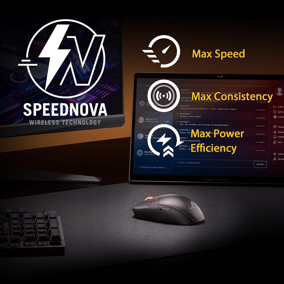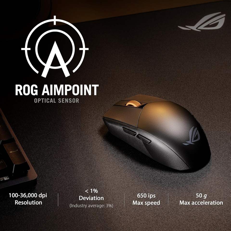 Souris de jeu programmable sans fil Rog Strix Impact Iii, légère (57 g), capteur 36k DPI, pour 2,4 GHz RF Speednova, ergonomique