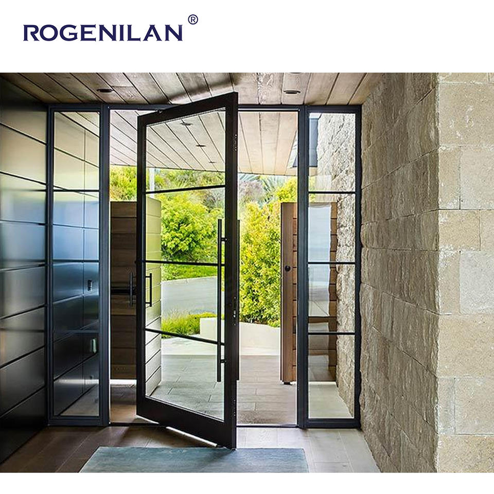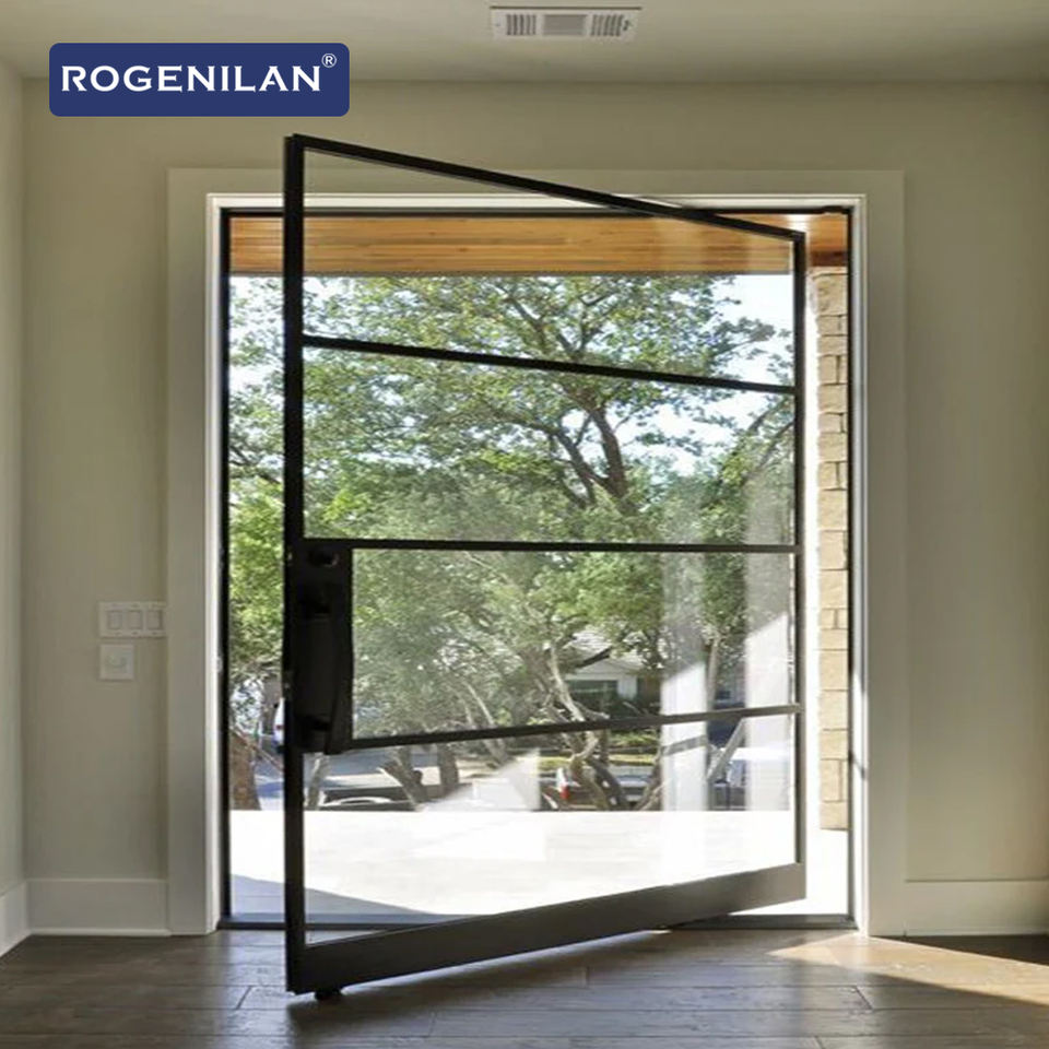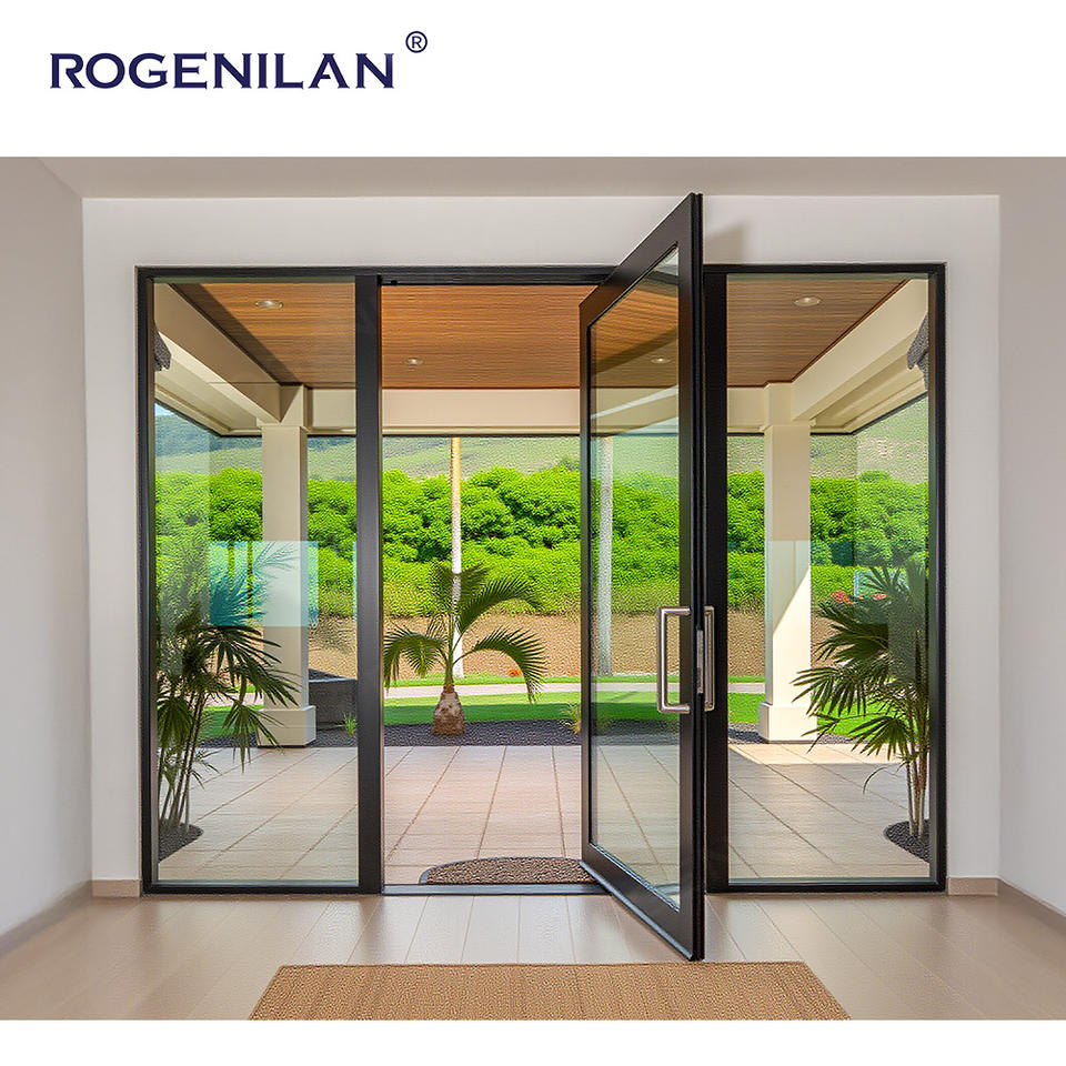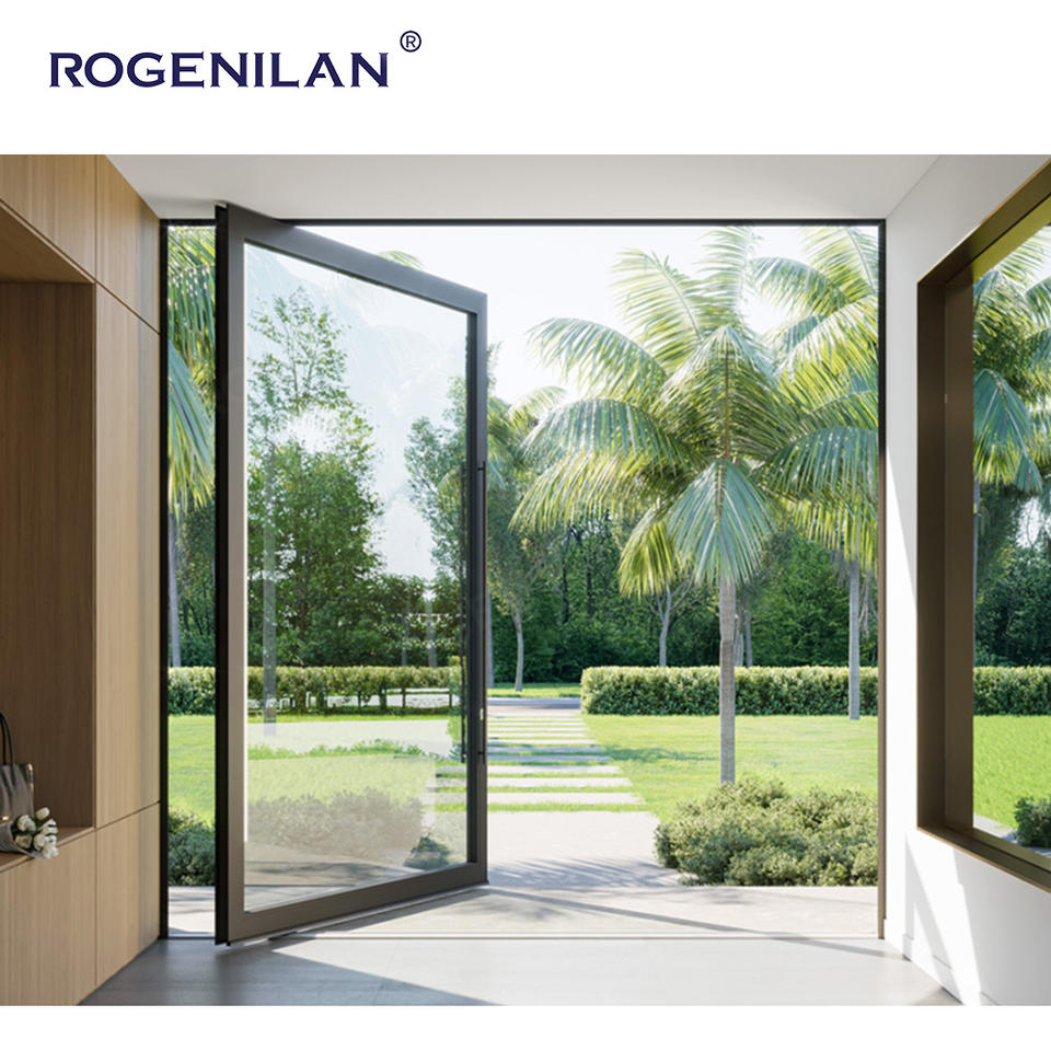 Rogenilan Hurricane Impact Aluminium Spring Door Usine Portes d'entrée personnalisées Double portes pivotantes en verre trempé