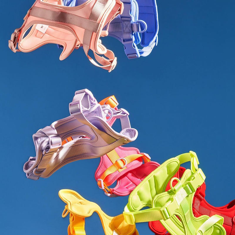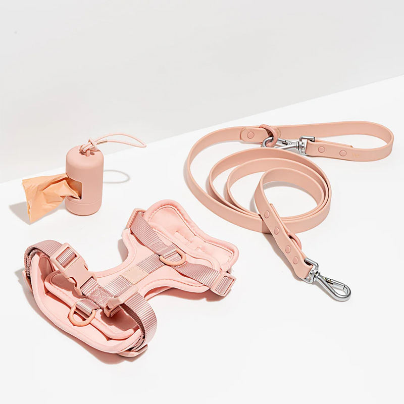 Ensemble collier, laisse et harnais pour chien Roki, rose clair, doux, confortable, réglable, en polyester, avec sac à déjections, pour les promenades quotidiennes.