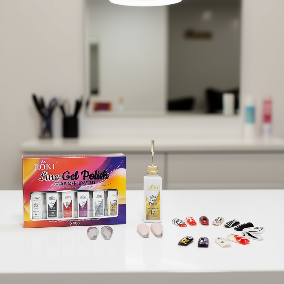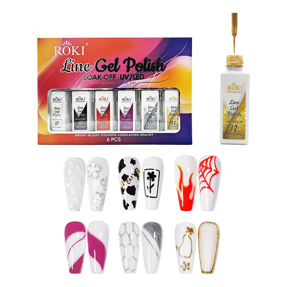 Vernis Gel Roki Line 10ml Soak Off UV LED Style Français pour Nail Art Professionnel en Salon