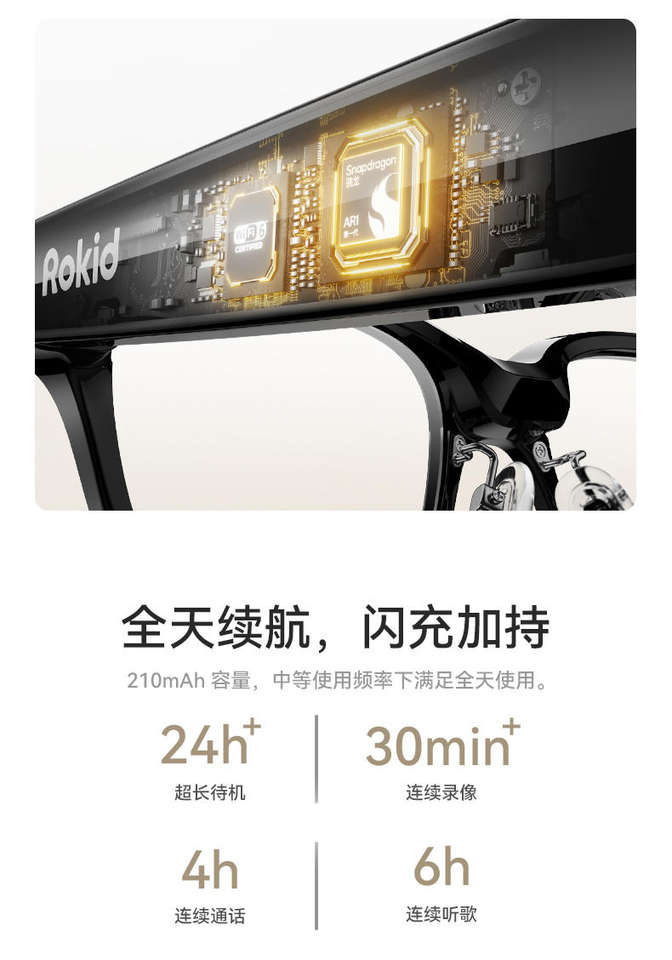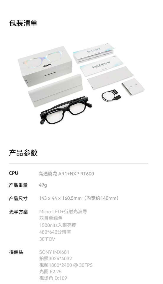 Rokid Lunettes intelligentes AI 40MP, affichage virtuel 300", traduction en temps réel, USB‑C, 8 h, application Connect