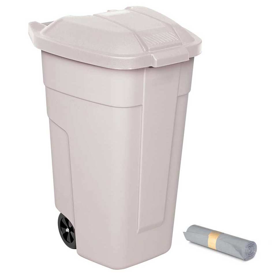 Rolleimer 100 Litres + GRATIS 50 Müllsäcke, LxTxH 510X550X850 Mm,Korpus Beige, Deckel Beige