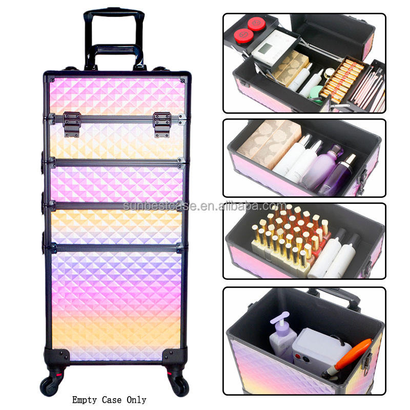 Valise à roulettes pour maquillage, grande valise de maquillage, valise de voyage pour maquillage, valise de rangement pour artiste en ongles, chariot de voyage, coffre noir