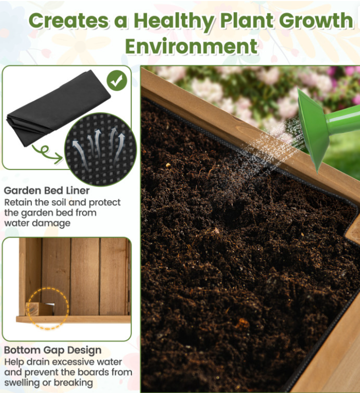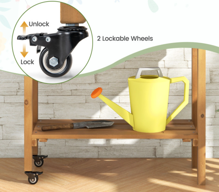 Jardinières à roulettes avec treillis, étagère de rangement et doublure noire, lit surélevé en bois intérieur extérieur pour vigne grimpante