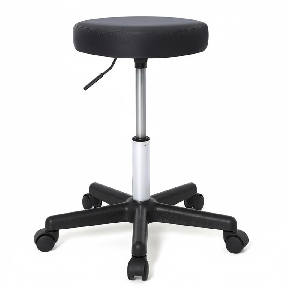 Tabouret roulant noir encre, chaise de bureau pivotante réglable en hauteur, design contemporain, structure en acier, base en plastique