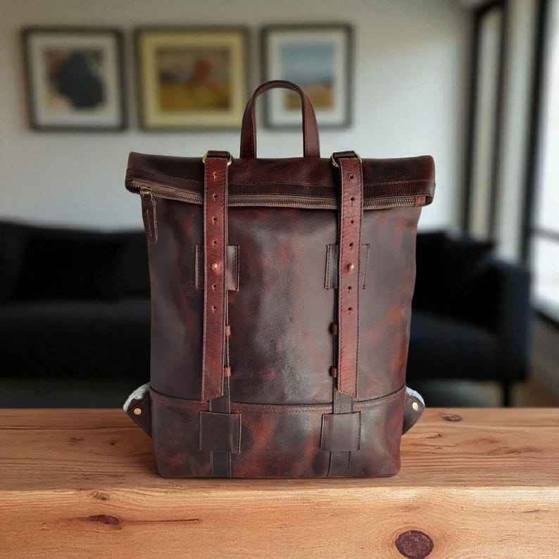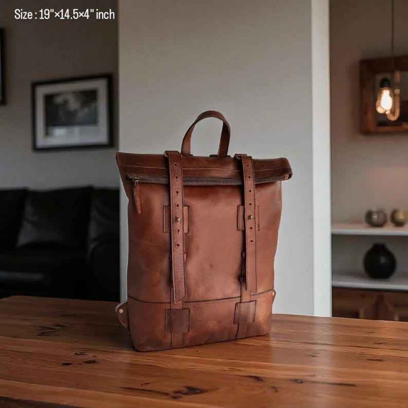 Product name:Leather Roll Top Backpack