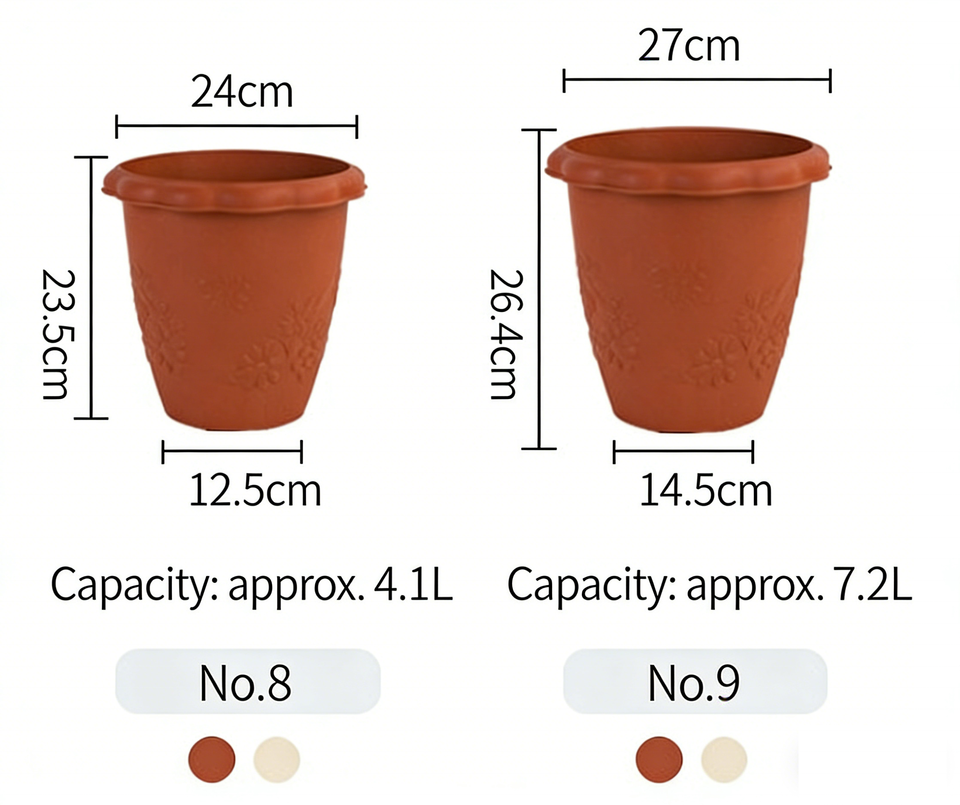 Pot de fleurs en plastique Roman Rembossed, deux tailles, design moderne, similaire à la terre cuite, pour plantes succulentes, vanille, pot de jardin en plastique