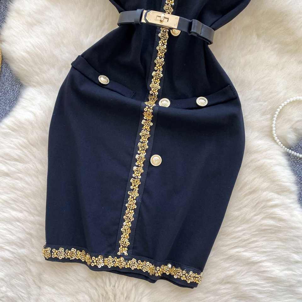 Robe Tunique Midi Col V Roman pour Femme, Sans Manches, Ornée de Perles, Dos Nu, Pailletée, en Dentelle, Noire