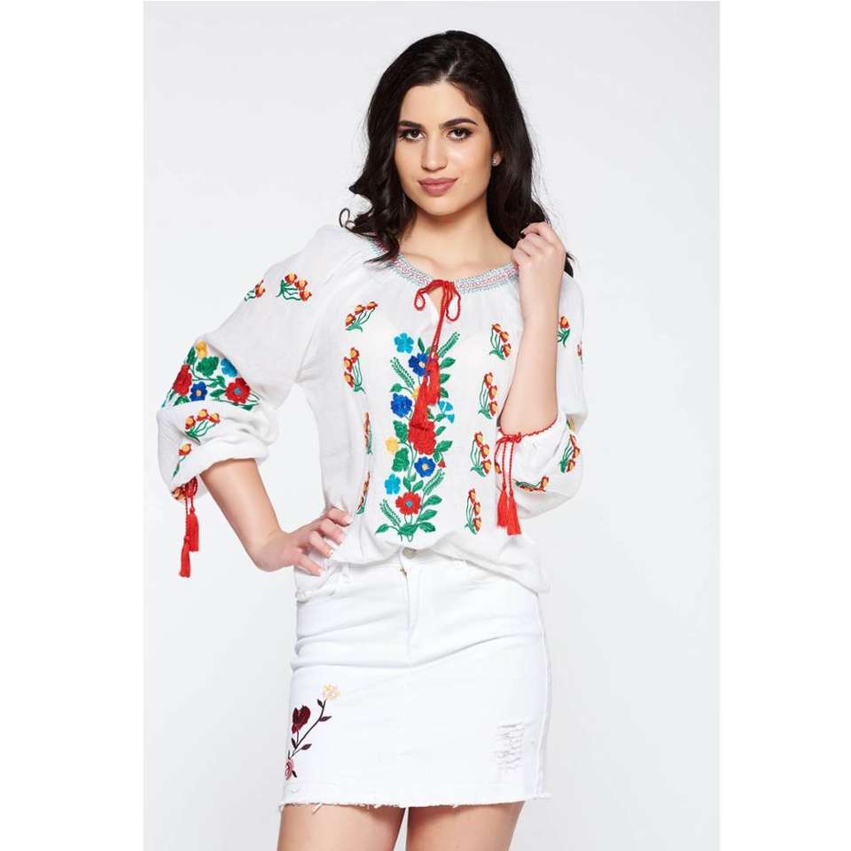 Blouse de paysan roumaine style 2024, haut en gaze de coton brodé, hauts bohèmes, broderie faite à la main, blouses roumaines
