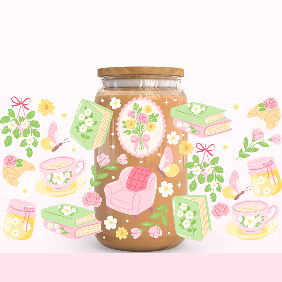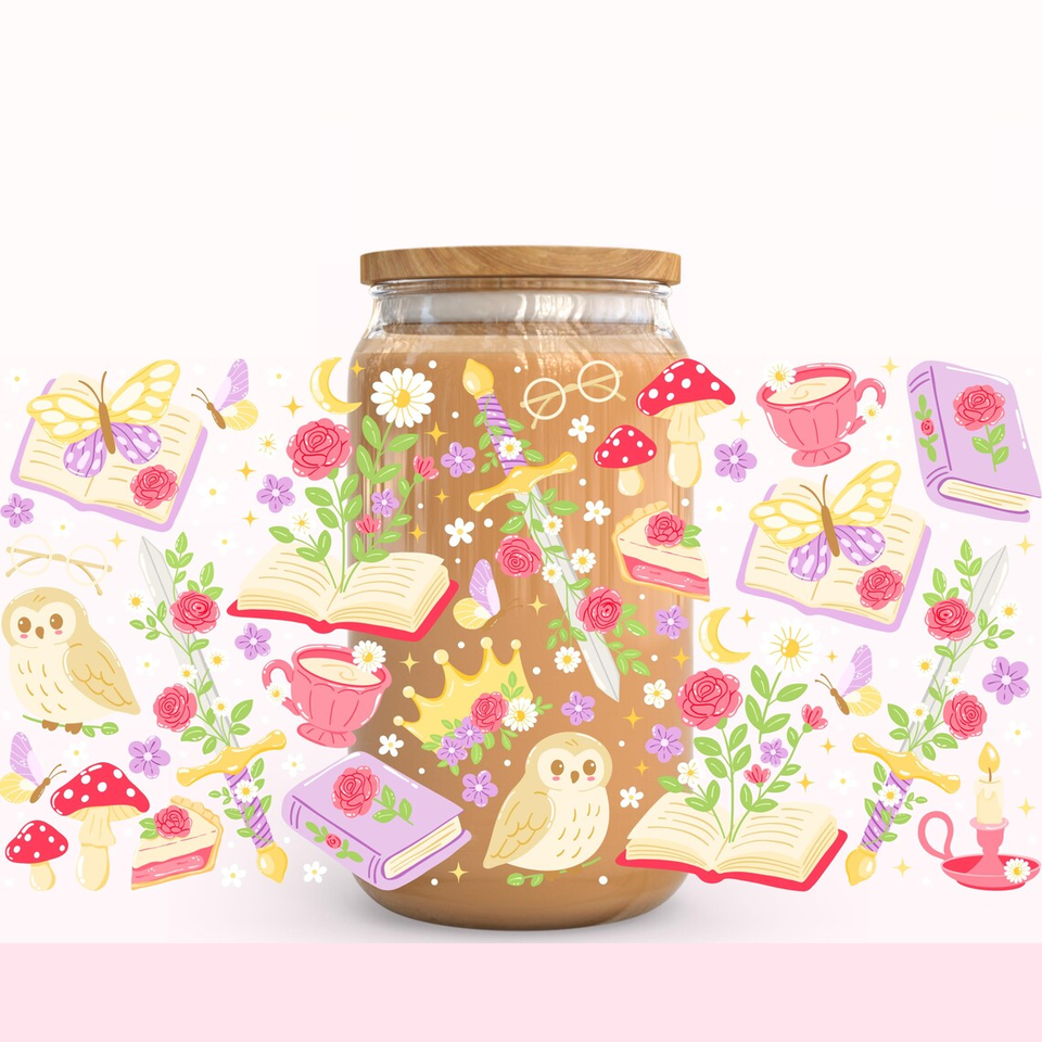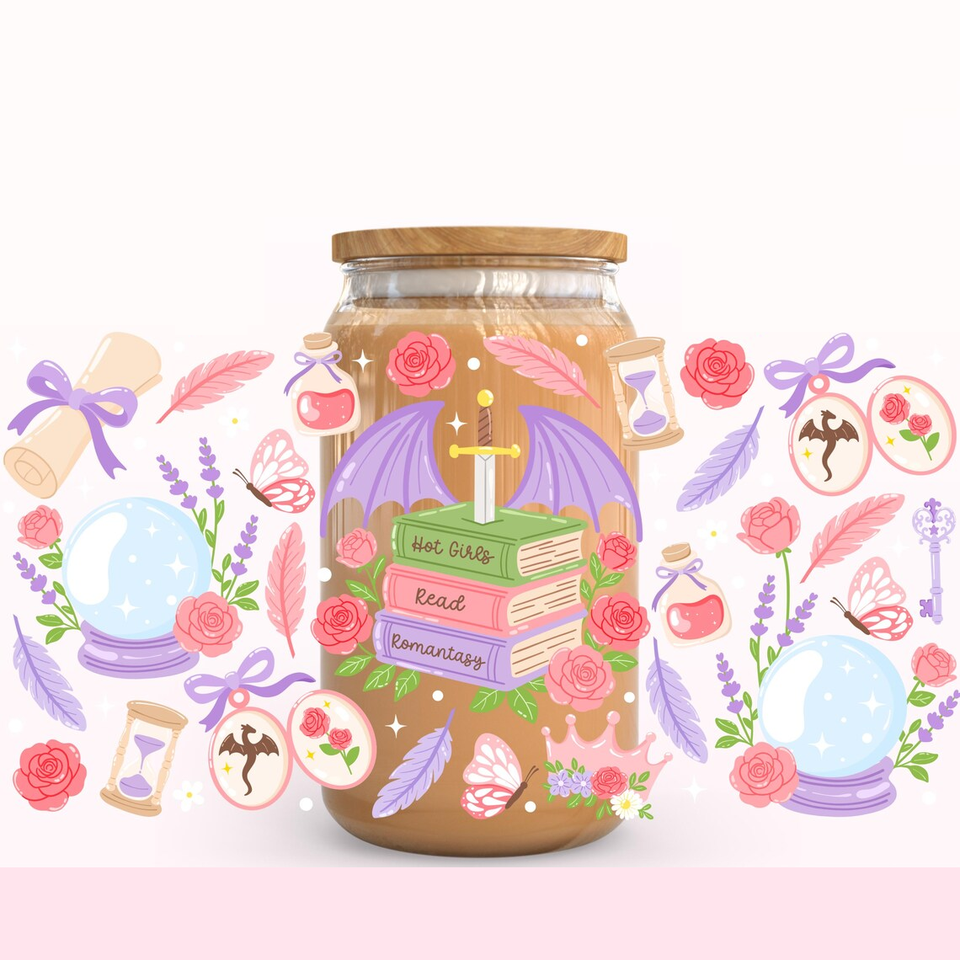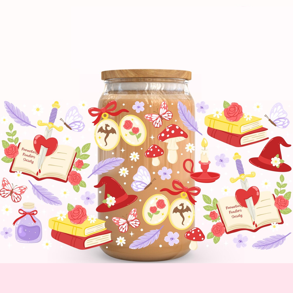 Cadeau pour les amoureux des livres Romantasy, lecture confortable, enveloppe de café glacé, livre fantastique, transfert thermique UV DTF, imperméable, Dark Academia, lecteur